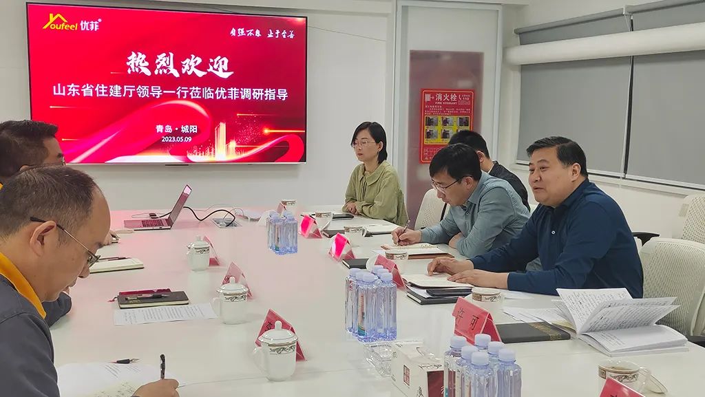 5月9日上午,山东省住房和城乡建设厅机关党委专职副书记张松涛、厅房地产市场监管处副处长许可、厅机关党委副书记杜吉立一行莅临青岛优菲智能家居有限公司(裕丰汉唐子公司)开展“党建链动”活动,并对企业发展和“链主”工作进行现场调研指导。青岛市住建局、市房地产事业发展中心、城阳区住建局、夏庄街道、流亭街道等相关部门领导陪同调研。裕丰汉唐总经理马春伟 、制造中心总监郭善达、销售部、企管部等与会。